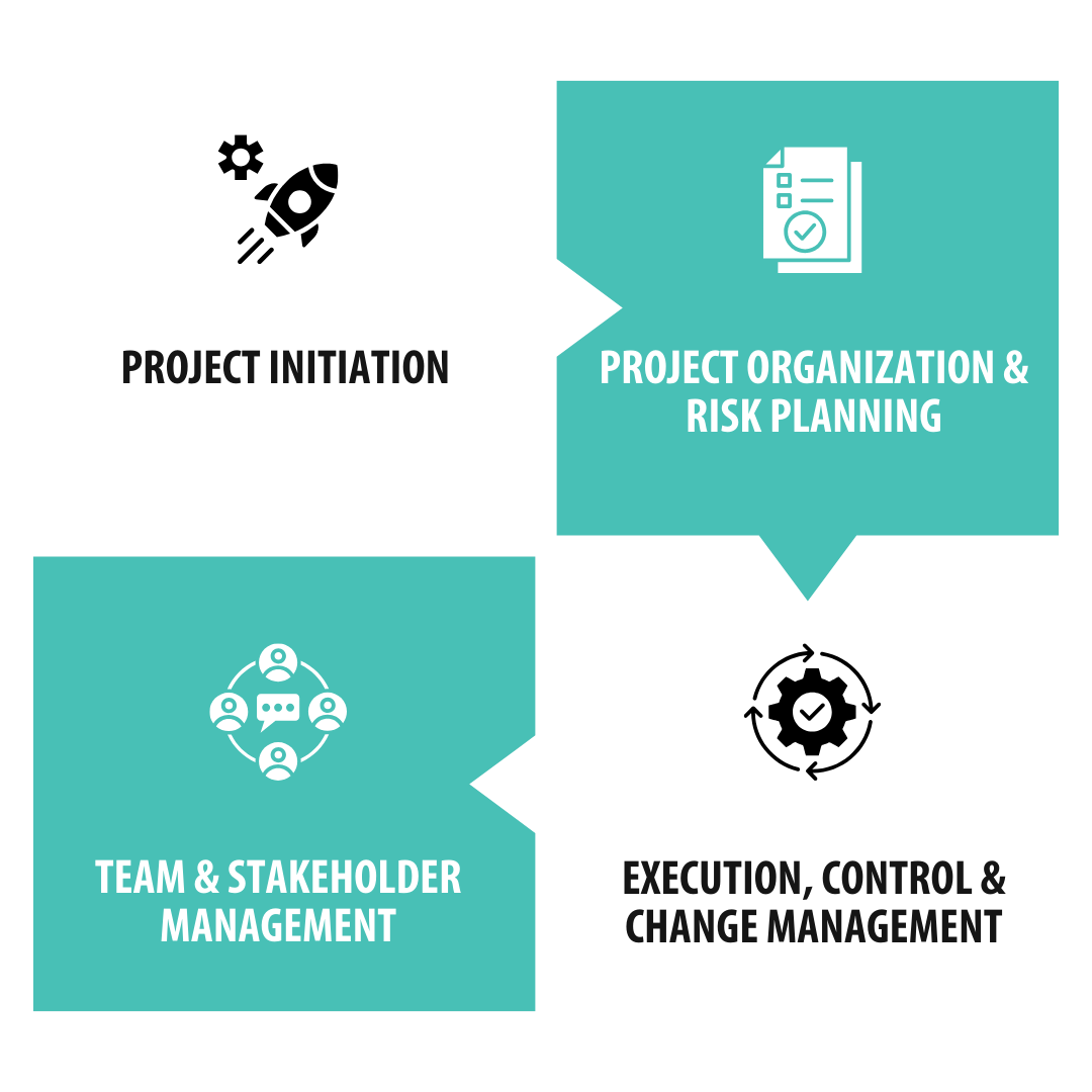 - Master the complete project lifecycle, from initiation and planning to execution and closure.